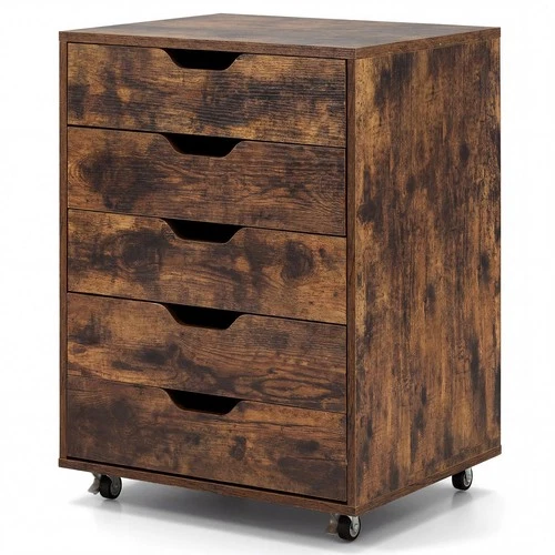 5 Drawer Filing Cabinet on Wheels Wooden Storage Cabinet with Lockable Brown