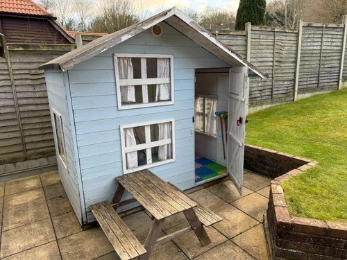 Charming 2-Storey Wooden Playhouse / Wendy House with Internal Loft + Bench