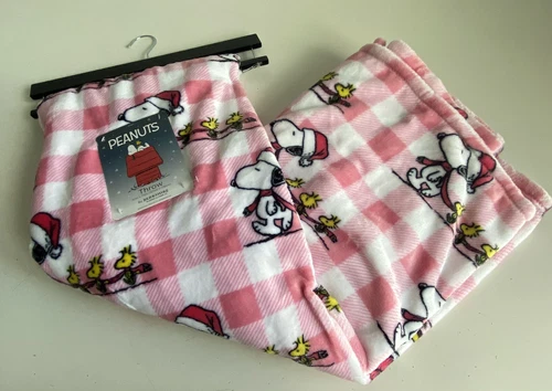 Peanuts Snoopy Woodstock Pink Holiday Throw Blanket Christmas 50 x 70” NEW
