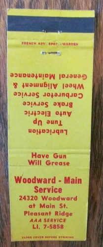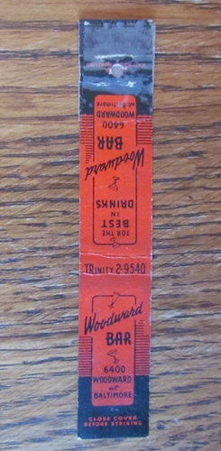 10 STRIKE MATCHBOOK COVER: WOODWARD BAR DETROIT, MICHIGAN EMPTY MATCHCOVER -A28