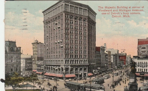Corner Of Woodward Avenue and Michigan Avenue, Detroit Michigan MI Postcard