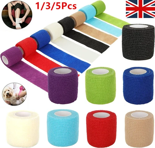 1/3/5 Rolls Cohesive Elastic Bandage Adhesive Wrist Ankle Gauze Tape Vet Wrap UK