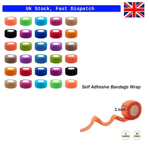 30 Rolls of 1 Inch Self-Adherent Cohesive Bandage - Versatile Sports Wrap Tape