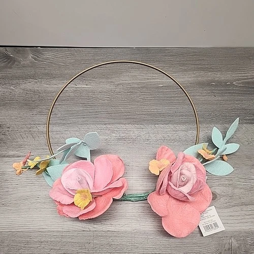 Felt Flower wreath Rose Gold Metal Ring - Door Window Wreath - Home Decor