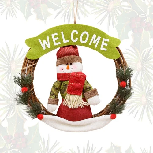 22cm Christmas Rattan Ring Wreath Door Hanging Pendant Snowman Ornaments