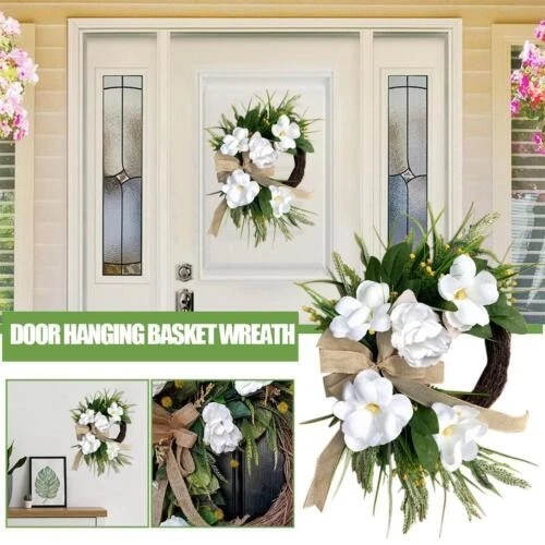 Easter Cross Wreath with Bow Rattan Ring Garland Hanging Ornament Home Gift New>