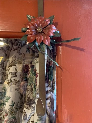 Vintage Metal Poinsettia Design Over The Door Wreath Hanger Christmas Holidays