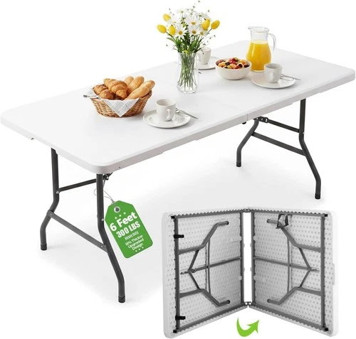 6ft Folding Trestle Table White Party Picnic BBQ Carry Outdoor Stall Table 1.8m