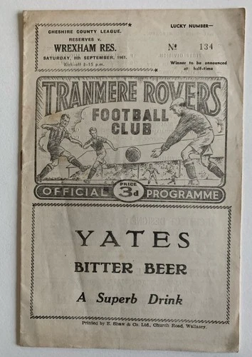 Tranmere Rovers Reserves v Wrexham Reserves 9th September 1961