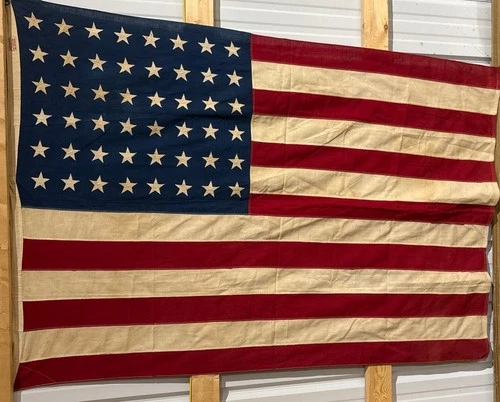 Vtg US 48 Star American Flag 3.5'x6.5' - Defiance Bunting moth proof WW1 WW2 era