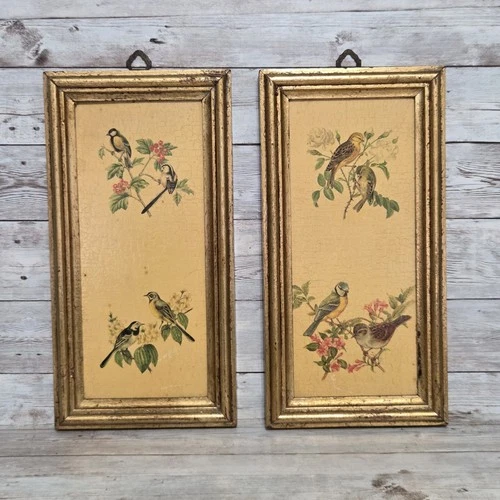 Vintage Bird Print Art Gold Wood Frames Made In Italy 11" X 6"