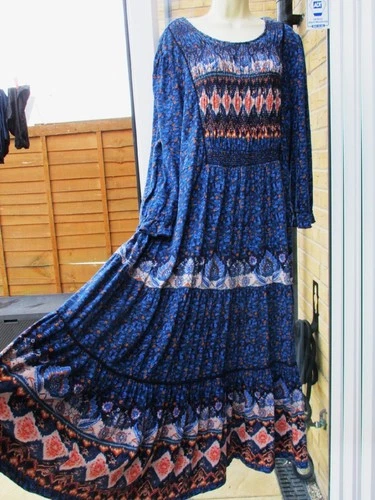 Monsoon Size XL 20 22 Blue Heritage Floral Print Smock Folk Jersey Midi Dress