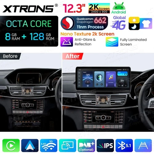 12.3" 2K Android 14 8-Core 8+128G Car Stereo GPS For Benz E-W212/S212 NTG4.5/4.7
