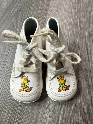 Vintage Toddler Walking Shoes White Leather Bunny Xylophone Rare 5” Miss Gina?