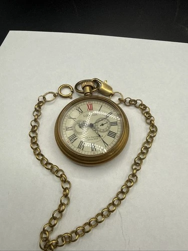 Mens Vintage Mechanical Pocket Watch with Chain Brass Open Face Case Fob Watches