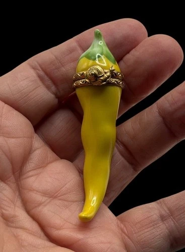 Limoges France Peint Main Yellow Chili Pepper Trinket Box – Hand Painted Brass