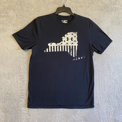 Under Armour T Shirt New York Map Flag Graphic Loose Fit Mens Medium Navy