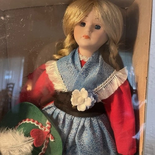 Schneider Doll German Girl Blonde Hair Braids Blue Dress Shawl Hat Boots Vtg New