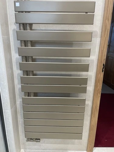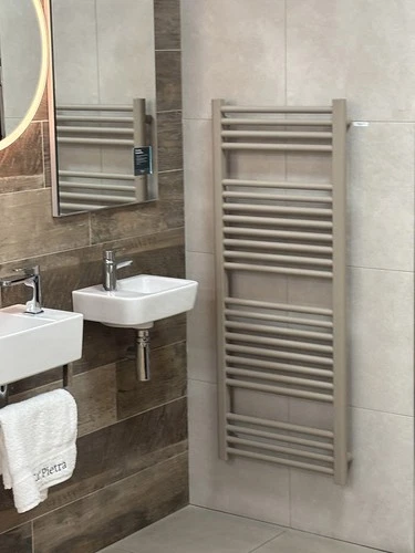 Zehnder Deline Electric Towel Radiator 1226mm x 500mm in Beige Quartz.