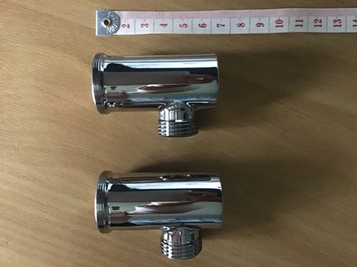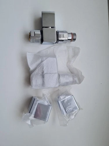 Manual Double Angled Valve Set By Zehnder In White Quartz. White sparkly valves