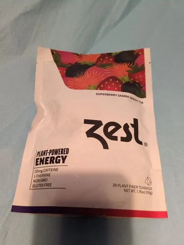 Zest Energy Superberry Samba Green Tea 20 Bags 135mg Caffeine Keto Friendly