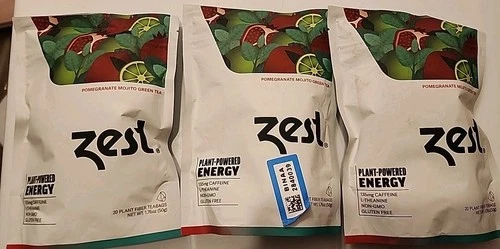3X Zest Energy Green Tea Pomegranate Mojito 135mg Caffeine High Energy Tea Bags