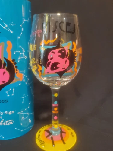 Lolita Zodiac Pisces - Wine Glass Love My Sign 15 oz Hand Painted