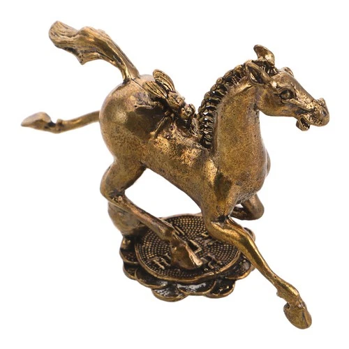 Brass Race Horse Figurine - Chinese Good Luck Zodiac Horse For 2026 New Year